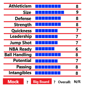 Guard/Wing, 6'7", 195lbs' Wingspan 6ft 11in,